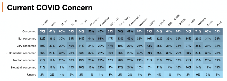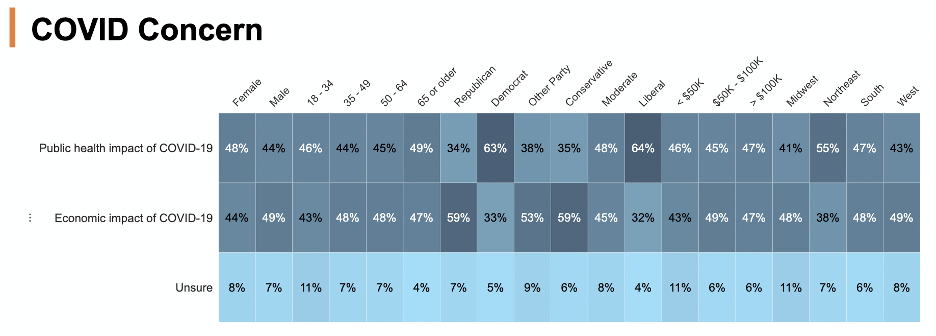 Although general concern about the pandemic is dipping, COVID-19 is still playing a major role in the politics of America. As more people are vaccinated and we transition to a place where the concern about economic impact outweighs the concern about public health impact, Republicans are in a good spot to tout their strong-on-the-economy values and scoop up on-the-fence or soft Dem voters who defaulted blue based on pandemic fallout in the last election.