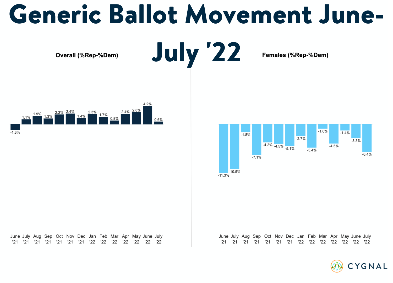The week after the ruling, we saw an immediate impact in our polling results. While the specifics of these polls are confidential, it was among the most striking shifts we’ve ever observed at Cygnal. Across the country, we observed the following shifts: